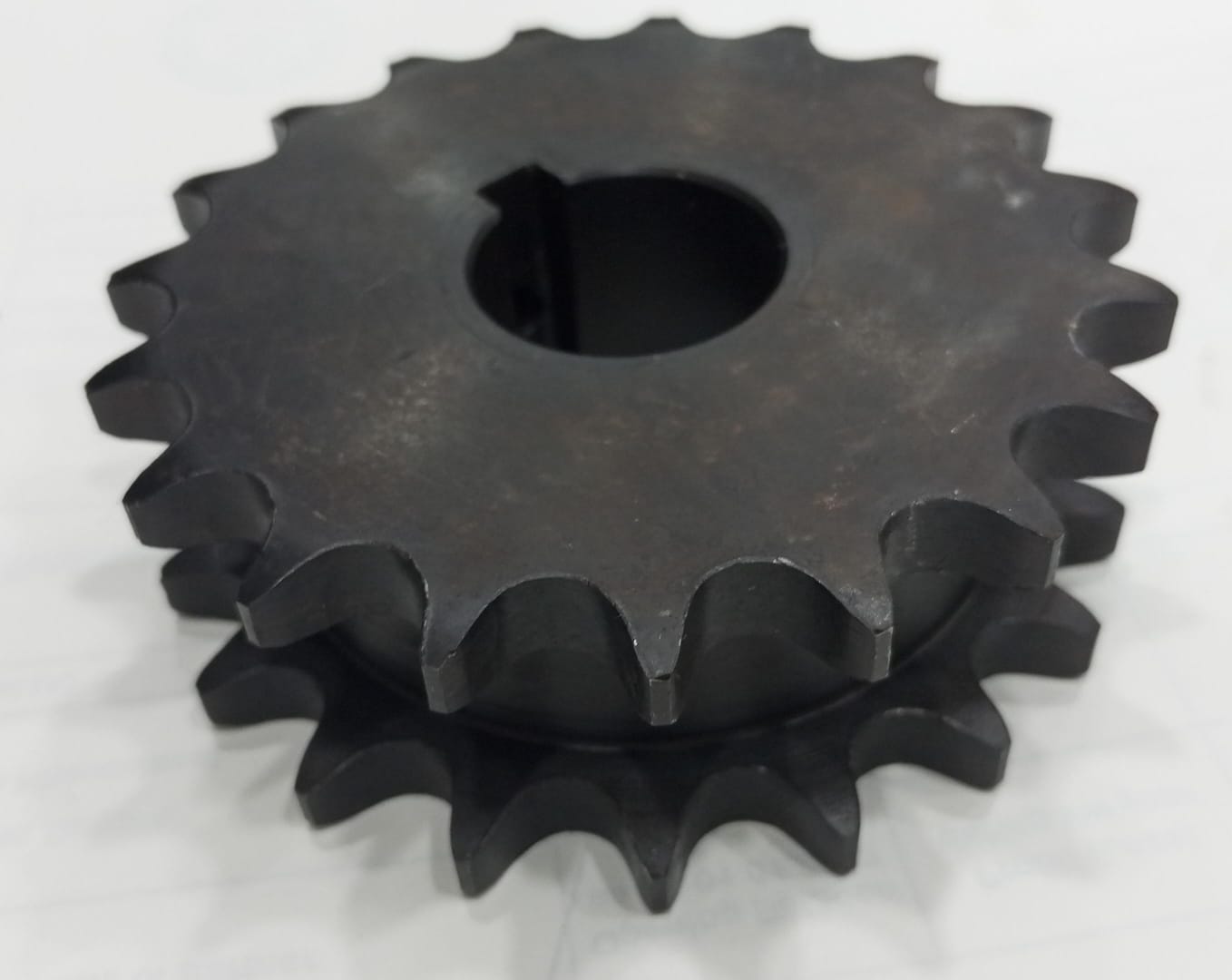 Engineered with a duplex (double-strand) chain design to handle greater torque and load capacity. The dual-hub construction enhances rigidity, ensuring vibration-free, stable power transmission under demanding welding operations. Made from EN-8 steel with a blackened surface finish for superior wear and corrosion resistance in industrial environments.